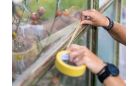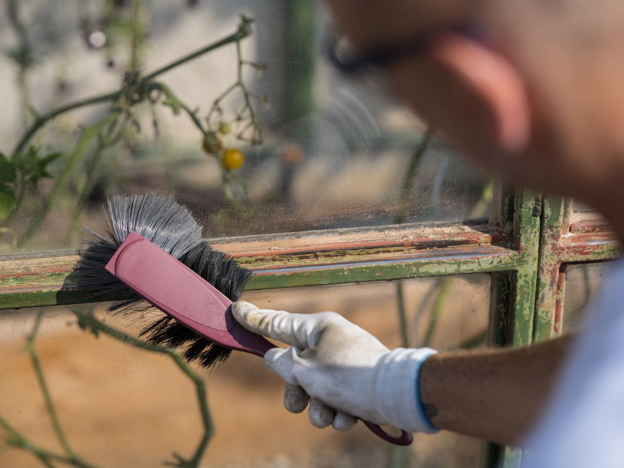 Během zimního období se skleník často stává skladištěm zahradního náčiní. Než se pustíte do oprav, všechny nástroje nejprve vykliďte. Následně zkontrolujte stav skleněných výplní. Pod tíhnou sněhu nebo během silného větru mohlo sklo popraskat. Hrozí-li vysypání skla, vyměňte poškozené části za nové. Jinak praskliny stačí vytmelit.
