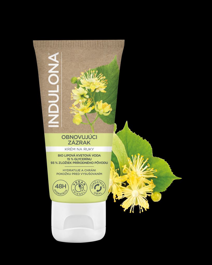 Krém na ruce INDULONA OBNOVUJÍCÍ ZÁZRAK byl speciálně vyvinutý tak, aby efektivně hydratoval pokožku, chránil ji před vysušováním a posiloval ji před vnějšími vlivy. Uzamyká v pokožce vlhkost a poskytuje jí dlouhotrvající ochranu. Obsahuje bio lipovou květovou vodu, známou svými vysoce hydratačními a antioxidačními vlastnostmi, 15 % glycerinu a 93 % složek přírodního původu. Vhodný pro každodenní použití. Dermatologicky testováno.