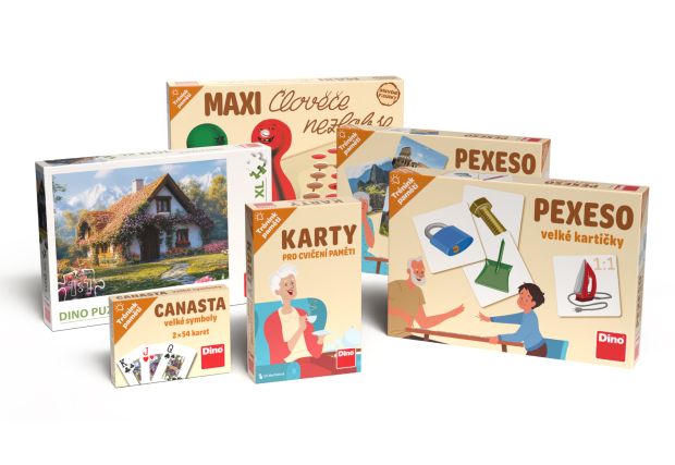 Dopřejte svým blízkým radost ze hry i ve zralém věku. Řada Trénink paměti od české značky Dino vznikla ve spolupráci s odborníky a reflektuje potřeby starších hráčů. Pomáhá jim udržet v kondici nejen paměť, ale také schopnost soustředění, vyjadřování a především – užít si společně strávený čas, i když už zrak nebo ruce tolik neslouží.