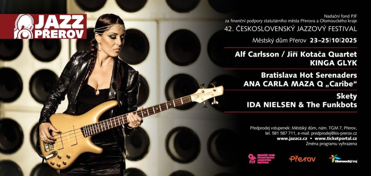 Letos se nám podařilo dovézt do Přerova vynikající soubory a sólisty. Hlavní hvězdy večera jsou zástupkyně něžného pohlaví – ve čtvrtek se představí Kinga Glyk, polská hráčka na basovou kytaru, v pátek Anna Carla Maza z Kuby na violoncello a v sobotu festival zakončí dánská baskytaristka Ida Nielsen.