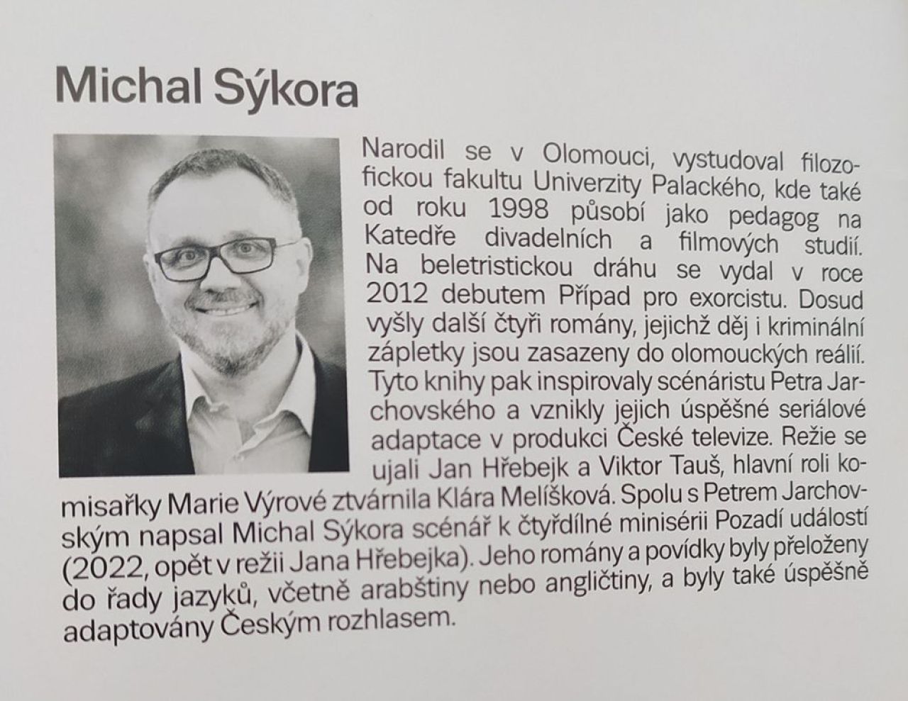 Má za sebou nejen několik úspěšných knih i televizních adaptací, ale povedla se mu i první divadelní hra Konečně jsi doma! aneb Papírové muzeum, jejíž premiéra proběhla před necelým rokem v Moravském divadle Olomouc. I tady se projevil Michal Sýkora jako dramatik, který má co říct a který umí překvapit vygradovaným příběhem. Je to umění, které neklopýtá po povrchu a které zasáhne.