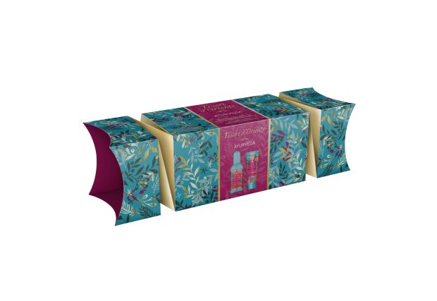 Nejoblíbenější řada Tesori d’Oriente Ayurveda čerpá z bohatství přírody – obsahuje bergamot, ylang-ylang, kosatec i růžový pepř. Její éterická vůně vás pohltí, zklidní a pomůže nalézt vnitřní rovnováhu. Dřevité a jantarové tóny s akcenty pomeranče a citronu doplňuje pačuli a cedrové dřevo. Díky tělovým přípravkům, avivážím, pokojovým sprejům i aroma difuzérům si můžete dopřát intenzivní pocit harmonie. Vánoční balení obsahuje parfémovou vodu a sprchový gel.
