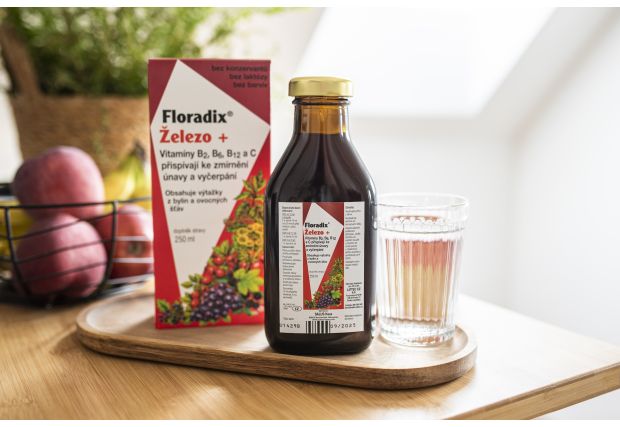 Dobrým zdrojem železa je červené maso, luštěniny, ořechy nebo sušené hřiby. Pomoci může i doplněk stravy Salus Floradix Železo+, který obsahuje železo ve snadno vstřebatelné formě, vitamíny B1, B2, B6, B12 a C, bylinné výtažky (fenykl, kopřiva, ibišek) a ovocné šťávy. Slazen je pouze ovocným cukrem, medem a šťávami.
