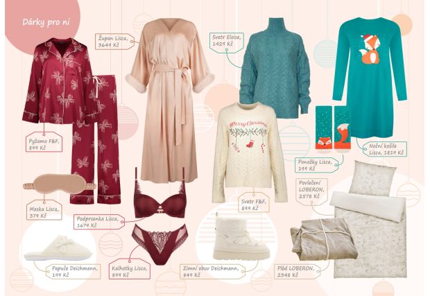 Přemýšlíte, čím potěšit sestru, maminku, babičku nebo kamarádku? Většina žen ocení dárky, které propojují komfort se stylem. Dopřejte jim něco pro domácí rituál, například příjemné pyžamo, hravou noční košili, měkoučký župan, ponožky, masku na spaní či domácí bačkory. Krok vedle neuděláte ani pleteninami – rolákem, svetrem s vánočními motivy či hřejivými zimními doplňky. Pokud dobře znáte vkus či velikost obdarované, nemusíte se bát ani dárků v podobě nadčasové kabelky nebo teploučkých zimních bot. Letos vedou také vkusné doplňky do bytu: udělejte radost měkkým povlečením, plédem nebo jinou dekorací do interiéru. Plánujete udělat radost sama sobě? Vsaďte třeba na luxusní spodní prádlo, které si běžně nedopřejete.