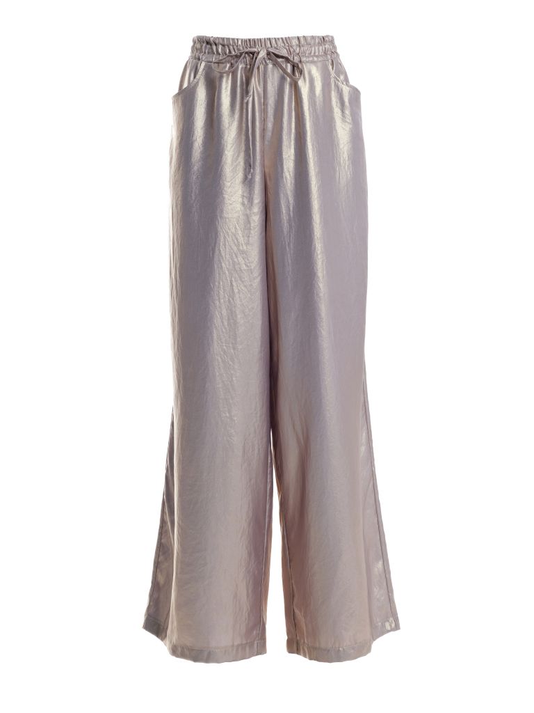 Metalicky třpytivý set v odstínu šampaň je dokonalou volbou pro slavnostní chvíle. Originálně střižený kabátek s vázačkou kolem pasu působí svěže a zároveň luxusně, široké kalhoty dodají outfitu elegantní siluetu. Volte jako působivý monochromatický komplet pro silvestrovský večer, nebo jednotlivě — horní díl s kalhotami v tlumených tónech působí chic, zlaté kalhoty s minimalistickým hřejivým topem zase nabídnou dokonalé pohodlí pro vánoční setkání.
