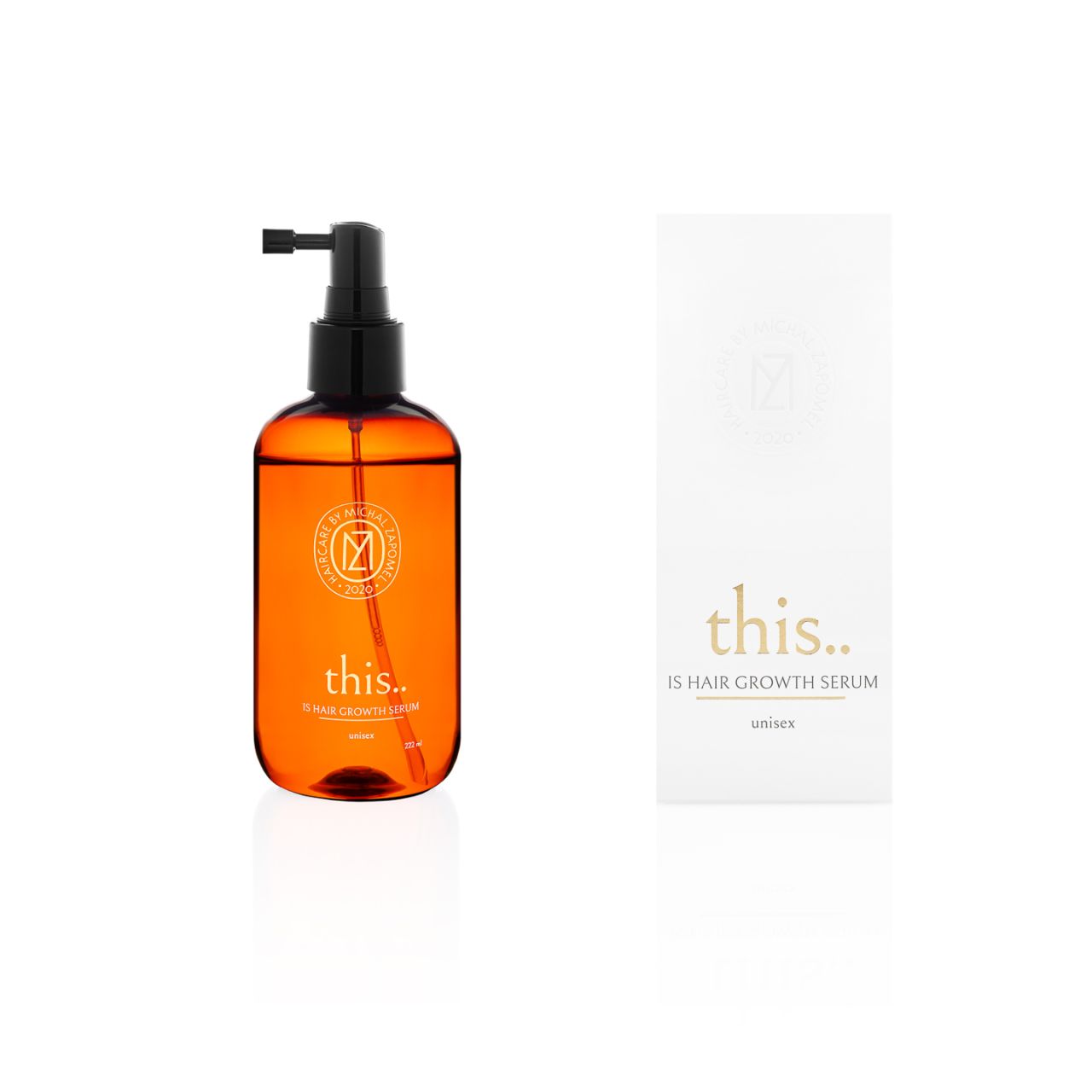 This… IS HAIR GROWTH SERUM unisex od kadeřníka a vlasového odborníka Michala Zapoměla kombinuje vysoce účinné aktivní složky a extrakty vyvinuté pro podporu hustších a silnějších vlasů. Deriváty pyrimidinoxidů a lipozomální kofein podporují prokrvení vlasových folikulů, prodlužují růstovou fázi a pomáhají blokovat účinek DHT. Současně pečují o vlasovou pokožku a celkovou vitalitu vlasů.