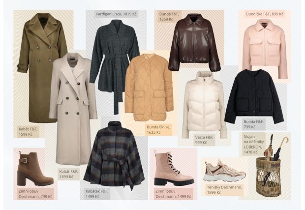 Letos dominuje minimalismus s charakterem. Kabáty s výraznými knoflíky, županové střihy se širokým páskem a klopami nebo oversize modely s nádechem vojenského stylu. Pro milovníky vzorů jsou tu strukturované materiály, kostka či kohoutí stopa, motivy, které z módy nikdy nevymizí.