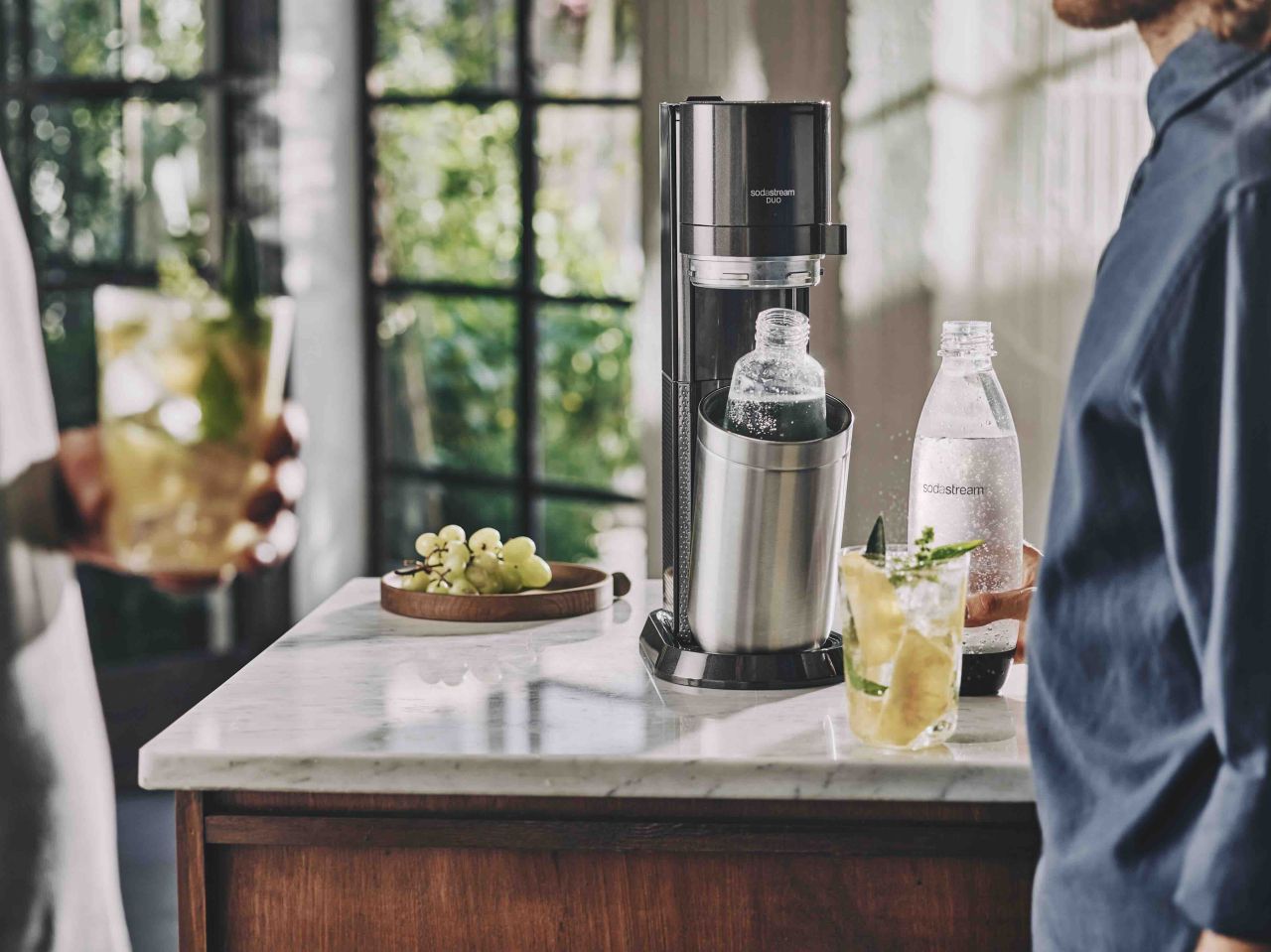 Ideálním řešením je domácí výrobník perlivé vody. Model SodaStream DUO je pro večírky jako stvořený. Jeho výhodou je kombinovaný systém, zatímco při přípravě v kuchyni oceníte odolnou plastovou lahev, na prostřený stůl můžete postavit elegantní skleněnou karafu, která skvěle ladí i s prémiovými víny. Obě nádoby jsou navíc vhodné do myčky, takže úklid po party bude rychlý a bez starostí.